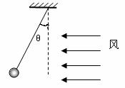 (6分)悬挂着的小球重6N,在均匀的水平风力作用下偏离了竖直方向θ=37°角而处于静止状态。求风对小球的作用力F和绳子的拉力T 。