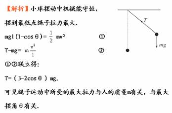 8.(11分)荡秋千是人们喜爱的游戏兼竞技项目,特别是儿童荡秋千可以锻炼平衡感觉系统,培养勇气和胆量.然而纵观各学校、幼儿园及各厂家的秋千,很少有使用说明,有的也仅仅是材质、规格、型号等简单内容.试用学过的知识分析影响绳索所受最大拉力大小的因素,从安全角度考虑,提供几条补充说明,已知秋千绳长为l,摆到最高点时绳与竖直方向的夹角为θ.