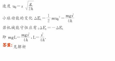 [解析]由题目可知小球由S点至N点过程下落的高度等于绳长,过了N点后小球做平抛运动,解答本题可先由ΔEp=-mgL分析重力势能变化量,再结合平抛运动知识分析动能变化量ΔEk.通过两者的比较,验证机械能是否守恒.需要测量的数据:线长L,抛出点离地面的高度h,水平位移s.小球从S到Q势能的变化ΔEp=-mgL由平抛运动规律,小球在Q点处
