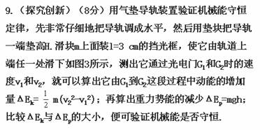 6.(2010·岳阳高一检测)(6分)在验证机械能守恒的实验中选出一条纸带如图1所示,以O为起始点,A、B、C三个计数点.打点计时器接通50 Hz的交流电,用最小刻度为毫米的刻度尺测得OA=11.13 cm、OB=17.75 cm、OC=25.9 cm.