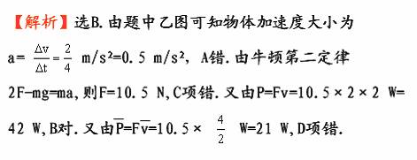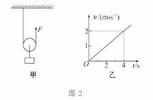 4.(2010·酒泉高一检测)如图2甲所示,滑轮质量、摩擦均不计,质量为2 kg的物体在F作用下由静止开始向上做匀加速运动,其速度随时间的变化关系如图乙所示,由此可知,(g取10 m/s2)( )