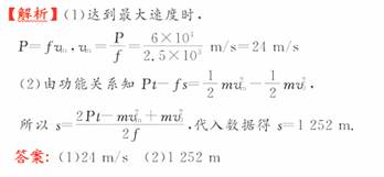 7.(2009·上海高考)(10分)质量为5×103 kg的汽车在t=0时刻速度v0=10 m/s,随后以P=6×104 W的额定功率沿平直公路继续前进,经72 s达到最大速度,设汽车受恒定阻力,其大小为2.5×103 N.求: