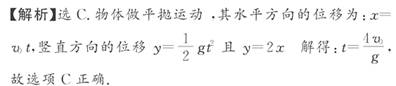 1.(2010·成都高一检测)物体以初速度v0水平抛出,当抛出后竖直位移是水平位移的2倍时,则物体抛出的时间是( )