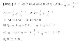 4.图1如图1所示,用一只飞镖在O点对准前方的一块竖直挡板,O与A在同一水平线上,当飞镖的水平初速度分别为v1、v2、v3时,打在挡板上的位置分别为B、C、D,且AB∶BC∶CD=1∶3∶5,(不计空气阻力)则v1∶v2∶v3的值为( )