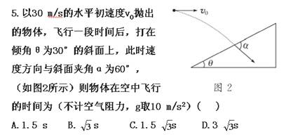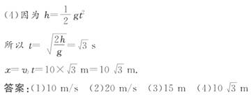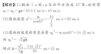 6.(10分)平抛一物体,当抛出1 s后它的速度与水平方向成45°角,落地时速度方向与水平方向成60°角.求(取g=10m/s2):