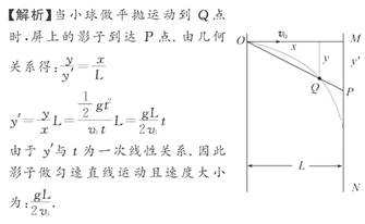 8.(10分)某同学做了以下实验来探究平抛运动的规律,从O点以初速度v0水平抛出一小球,在距抛出点L处竖直放置一光屏MN,如图4所示,离小球抛出点很近处有一很小的光源,使小球的影子投射在屏上,试分析:当小球做平抛运动时,小球在光屏MN上的影子将做何运动?
