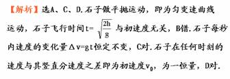 D.石子在任何时刻的速度与其竖直分速度之差为一恒量