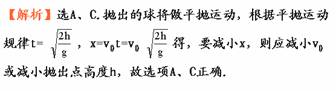 (2010·龙岩高一检测)在一次投球游戏中,小刚同学调整好力度,将球水平抛向放在地面的小桶中,结果球沿如图3所示划着一条弧线飞到小桶的右方.不计空气阻力,则下次再投时,他可能作出的调整为( )