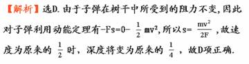 的速度射入树干时,射入的深度为( )