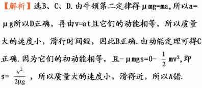 3.质量不同而具有相同动能的两个物体,在动摩擦因数相同的水平面上滑行到停止,则( )