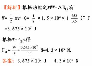 6.(9分)在航空母舰上有一架飞机,质量为1.5×104 kg,飞机在发动机的动力和蒸汽弹射器的共同作用下,在短短的85 m距离内,速度由零增大到252 km/h,在这个过程中,合外力对飞机做了多少功?飞机受到的平均合外力多大?