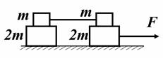 10.如图所示,光滑水平面上放置质量分别为m和2m的四个木块,其中两个质量为m的木块间用一不可伸长的轻绳相连,木块间的最大静摩擦力是μmg。现用水平拉力F拉其中一个质量为2m的木块,使四个木块以同一加速度运动,则轻绳对m的最大拉力为