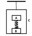 如图所示,三个物体A、B、C质量均是m,物体A、B用一根质量不计的轻质弹簧连接,放在框C里面,用一根轻绳将框C掉在天花板上。现将轻绳剪断,剪断的瞬间,A的加速度为__________,B的加速度为_________,C的加速度为____________。(重力加速度为g)