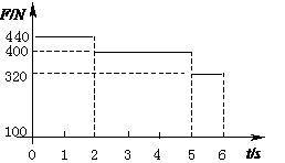 23. (4分)一质量为m=40kg的小孩在电梯内的体重计上,电梯从t=0时刻由静止开始上升,在0到6s内体重计示数F的变化如图所示。