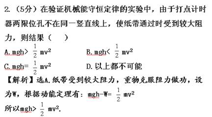 (2)由于重物和纸带都受阻力作用,即都要克服阻力做功,所以有机械能损失,即重物的动能值要小于相应重力势能的减少值.