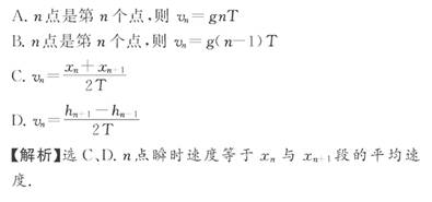 [解析]选A.选用的重锤宜重一些,可以使重力远远大于阻力,阻力可忽略不计,从而减小实验误差,故A正确;重锤的体积越大,下落时受空气阻力越大,实验误差就越大,故B错误;不需用秒表计时,打点计时器就是计时仪器,比秒表计时更为精准,故C错误;电磁打点计时器的振针与纸带间有摩擦,电火花计时器对纸带的阻力较小,故应选电火花计时器,D错误.