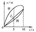9. 如图为甲、乙、丙三个物体在同一直