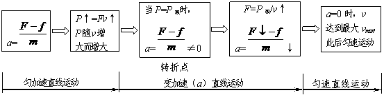 汽车启动过程经历了两个阶段,一是匀加速直线运动状态,二是变加速直线运动状态,最终做匀速直线运动;