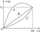 解析:由图可知,B、C两物体一起向着s的正方向运动,而A先向s正方向运动后向s负方向运动,因此物体B、C位移和路程都是s0,而物体A位移是s0,路程则大于s0,所以A物体的平均速率大于B、C两物体的平均速率,而B、C两物体的平均速率相等。