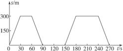 解析:本题为读图题,从图中直接获取的信息:0-30 s 匀速运动,位移s1=300 m;30-60 s静止;60-90 s匀速运动但方向与s相反;90-150 s静止;……