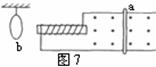 4.如图所示,当金属棒a在处于磁场中的金属轨道上运动时,金属线圈b向右摆动,则金属棒a ( )