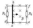 如图所示,一闭合金属线框的两边接有电阻R1、R2,框上垂直搁置一根金属棒,棒与框接触良好,整个装置放在匀强磁场中,当用外力使