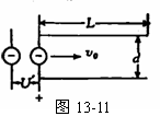 如图13-11所示,一束电子从静止开始经U′= 5000V的电场加速后,从水平放置的一对平行金属板正中水平射入偏转电场中,若金属极板长L = 0.05m,两极板间距d = 0.02m,试求: