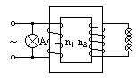 如图所示,理想变压器原、副线圈的匝数比n1:n2=1:3,次级回路中连入三个均标有“36V,40W”的灯泡, 且均正常发光,那么, 标有“36V、40W”的灯泡A