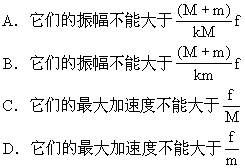 8.如图1所示,两木块A和B叠放在光滑水平面上,质量分别为m和M,A与B之间的最大静摩擦力为f,B与劲度系数为k的轻质弹簧连接构成弹簧振子。为使A和B在振动过程中不发生相对滑动,则 [ ] www.k@s@5@ 高#考#资#源#网
