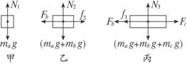 为考查b、c之间的摩擦力情况,以物体a、b组成的整体为研究对象,通过受力分析后得:b受c向右的静摩擦力f2与Fb平衡,如图乙所示。