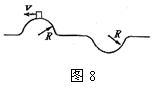 如图8所示,质量为M的赛车,在比赛中要通过一段凹凸起伏路面,若圆弧半径都是R,汽车的速率恒为