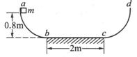 如图所示的轨道,ab段及cd段是光滑的弧面,bc段为中间水平部分,长为2m,与物体间的动摩擦因数为0.2,若物体从ab段高0.8m处由静止下滑,g取10m/s2,求: