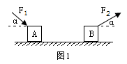 8、如图1所示,物体A和B质量相同,都置于水平地面上,它们与地面间的动摩擦因数也相同,大小相等的两个恒力F1 和 F2分别作用在物体A和B上,但F1与水平方向成