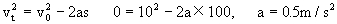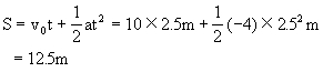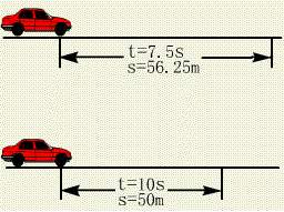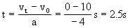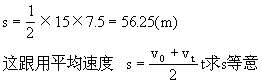 计算表明t<10s 因此2.5s车是停着的,所以刹车距离s为