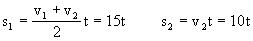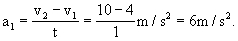 对应于题中a1、a2 两情况,其v-t图见图所示.由图可知:当v2与v1同向时,其平均速度和1s内的位移分别为