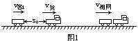 [说明] 本题也可用v-t图求解.如图2所示,画出两车的速度图线.刚好相遇不相撞时,其中画有斜线的三角形面积数值上应等于s0,即