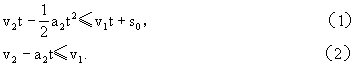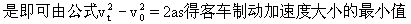 当制动加速度取最小值时,两个不等式可改为等式.由(2)式得客车速度减小到等于货车速度的时间