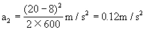 以v1=28.8km/h=8m/s,v2=72km/h=20m/s,s0=600m代入得