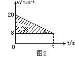 作v-t图象(图2所示),可得刹车时间t=7.5s,刹车距离s可用图中三角形面积表述,如图2所示。