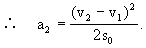 上面的计算都是以地面为参照物的.如果改以货车为参照物,即站在货车上看后方的客车,客车制动后相对于它以初速(v2-v1)、加速度a2向它驶来,不相撞时,经位移s0后恰好静止(即与货车相对静止).于![]()