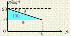 图中画阴影线的面积值表示A车车速由20降到10m/s时,A比B多走的位移,即s1-s2=100m