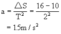 例7.有一个作匀加速直线运动的质点,它在两个连续相等的时间间隔内所发生的位移分别为10m和16m,时间间隔为2s,求该质点运动的加速度a。