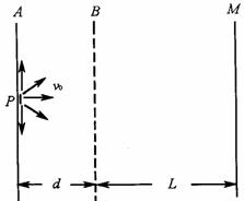 ,方向沿四面八方,且机会相等.在B处放一块平行于A的足够大的金属网,A、B间加一场强为E、方向水平向左的匀强电场,A、B间相距