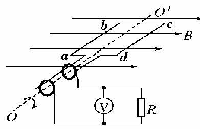 18(12分).如图所示为小型交流发电机的原理图,其矩形线圈在匀强磁场中绕垂直于磁场方向的固定轴OO′匀速转动,线圈的匝数n电阻r,线圈的两端经集流环与R的电阻连接,与R并联的交流电压表为理想电表.线圈转动角速度ω.转动过程中穿过线圈平面的最大磁通量 Φ。求: