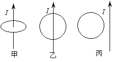 (甲)长直导线穿过导线环中心,并和导线环所在平面垂直