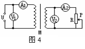 如图4所示M为理想变压器.电源电压不变。当变阻器的