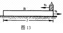 19.(15分)如图13所示,一质量为M、长为l的长方形木板B放在光滑的水平地面上,在其右端放一质量为m的小木块A,m<M。现以地面为参照系,给A和B以大小相等、方向相反的初速度(如图),使A开始向左运动、B开始向右运动,但最后A刚好没有滑离B板,以地为参照系。