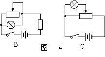 9、下列四个电路中,电源、电灯、滑动变阻器都分别相同,其中通过滑动变阻器的调节,能使电灯两端电压变化范围最大的是: