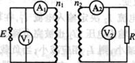 如图所示,一理想变压器的原线圈匝数nl=l000匝,副线圈匝数n2=200匝,交变电流源的电动势值E=311sin(100πt)V,电阻R=88Ω,电压表和电流表对电路的影响可忽略不计,则: