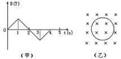 10.如图所示,圆形线圈垂直放在匀强磁场里,第一秒内磁场方向指向纸里,如(乙)图所示,若磁感强度大小随时间变化的关系如(甲)图所示,那么,下面关于线圈中感应电流的说法正确的是:( )